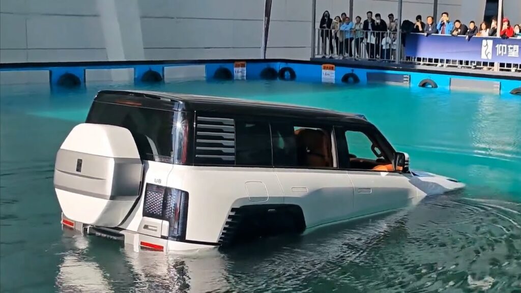 - Wheels become propellers: The four independent electric motors spin the tyres to move the SUV forward at 1.8–3 km/h (about 1.8 mph) while floating.