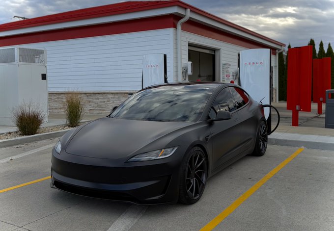 The car in question was a matte black Model 3 Performance, seen charging at a Supercharger station. Tesla’s fast-charging infrastructure allowed seamless stops without the range anxiety that once plagued electric vehicles.